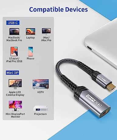يتيح لك توصيل اللابتوب أو الهاتف بمنفذ USB-C إلى شاشات Mini DisplayPort بدقة عالية تصل إلى 4K@60Hz. تصميم أنيق ومتين بلون رمادي، مثالي للعروض التقديمية، العمل، أو مشاهدة الفيديو بجودة فائقة.