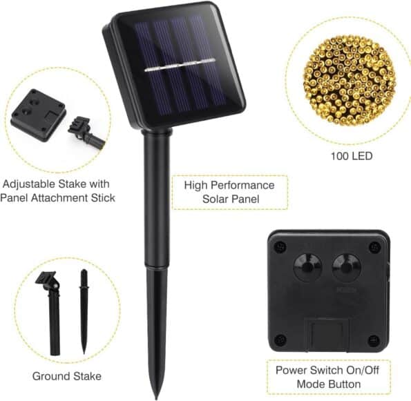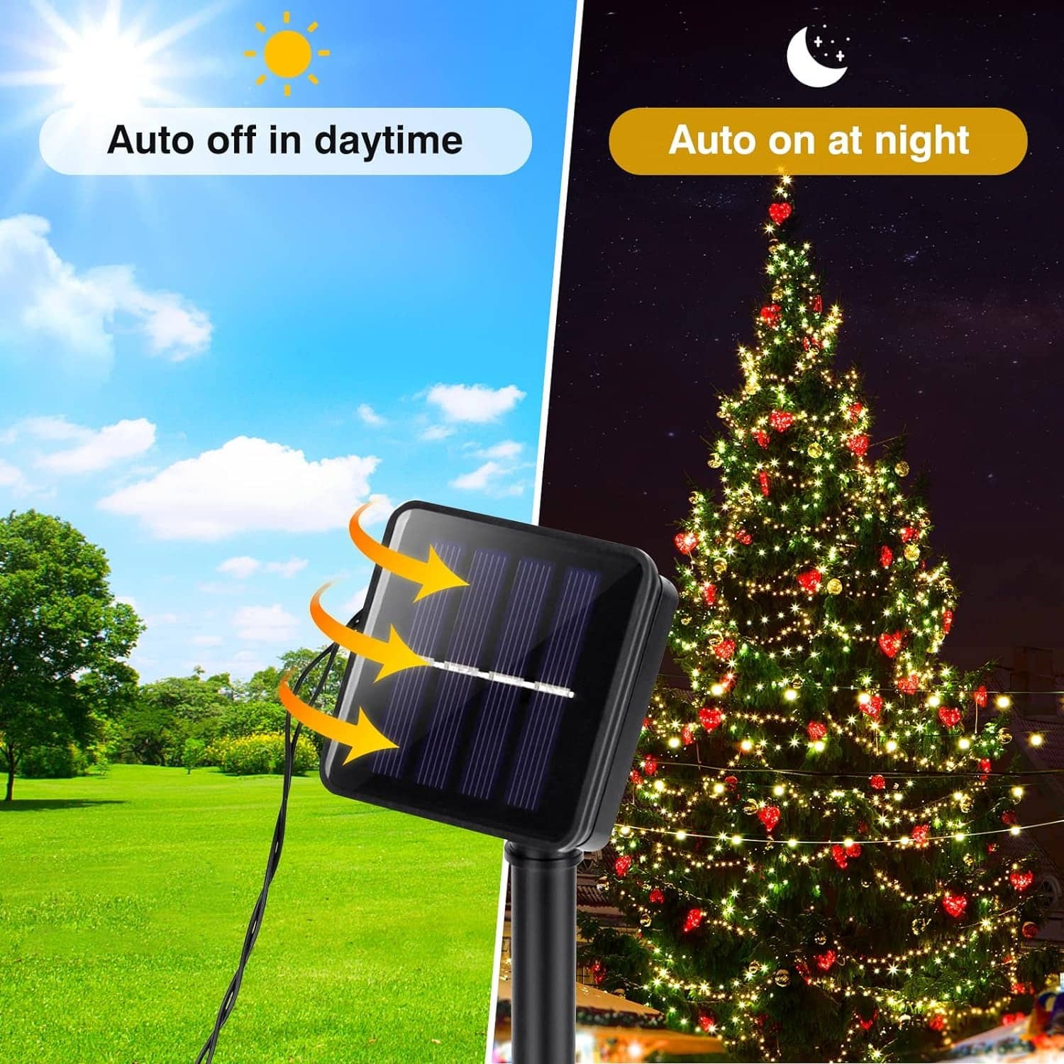 - 【تصميم مقاوم للماء】سلسلة المصابيح الشمسية واللوحة الشمسية مقاومة للماء بتصنيف IP44، متوافقة مع المعايير الأوروبية وجي اس وتوجيه الحد من المواد الخطرة، لا داعي للقلق بشأن تلف الطقس، حتى في الأيام الممطرة، لا يزال بإمكانك رؤية الإضاءة الرومانسية. هذه الزينة المثالية للديكور الخارجي!