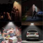 intelamp Solar Lights Outdoor, Solar Motion Sensor Lights Solar Fence Lights,Solar Garden Light 5 Working Modes and Adjust Brightness and Color by Remote Control for Garage Walls Fences Yards Lights